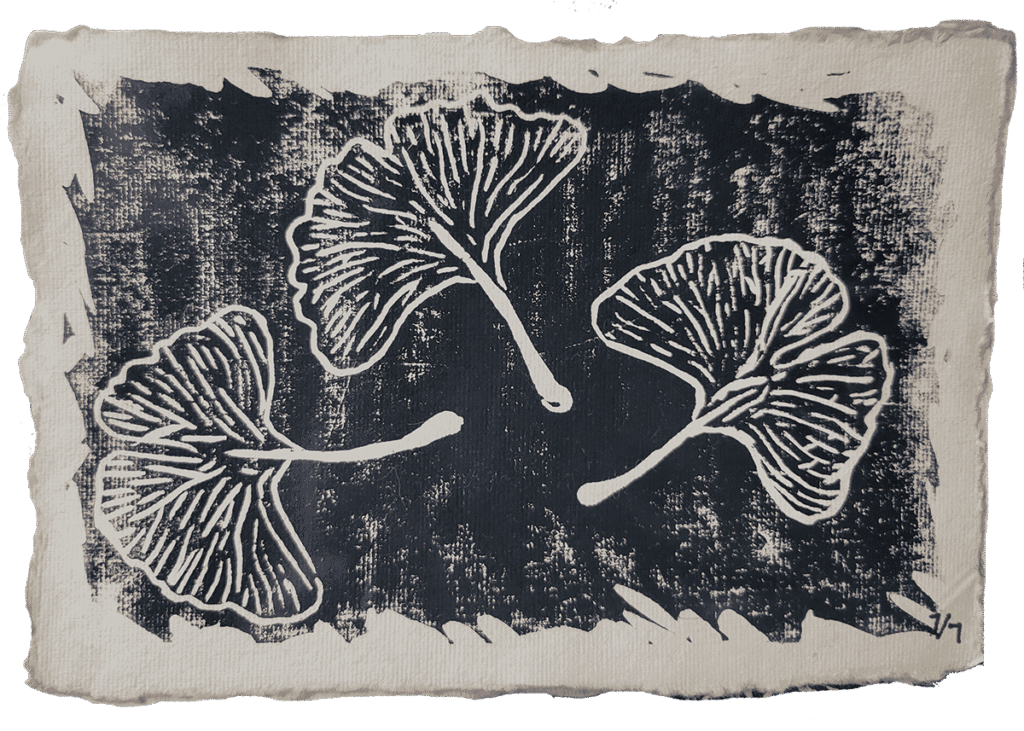 All prints are 4 in by 6 in with black ink on handmade parchment paper. Printed and carved in June 2025